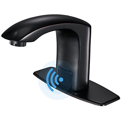 reddit BWE Touchless Bathroom Sink Faucet Oil Rubbed Bronze Automatic Sensor with Hole Cover Plate Hands Free Bathroom Water Tap with Control Box and Temperature Mixer Battery Powered Vanity Faucets